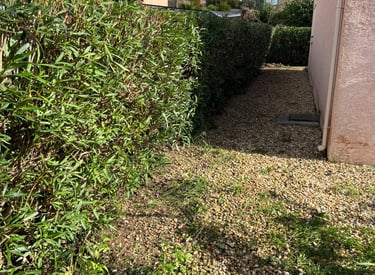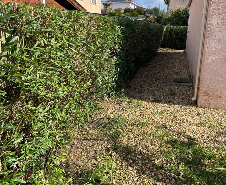 Nous effectuons la taille de haies, tonte de pelouse et débroussaillage pour un jardin soigné.